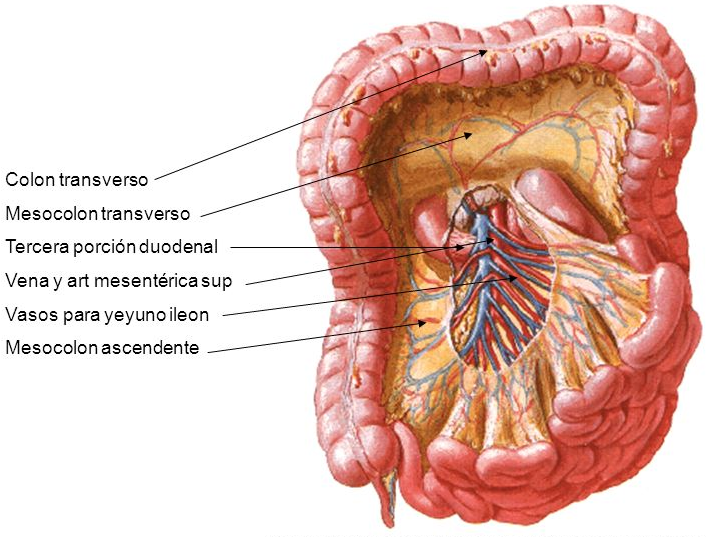 intestinos, recibe la vascularización sanguínea y linfática e inervación