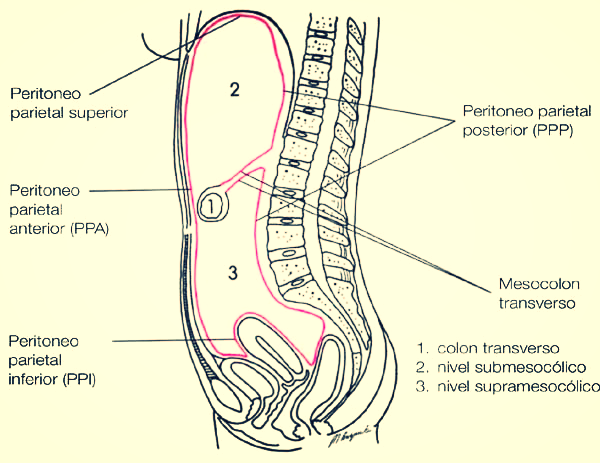 - Mesocolon transverso y sigmoide.